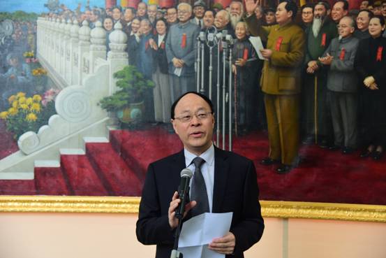 刘洪一表示,2018年伊始我校揭牌成立刘宇一艺术院,同时举办丹青华章筑国梦——刘宇一画展,对于深圳大学有着特殊的含义。深圳大学作为“深圳速度”这个历史词汇的缘起之地,它和深圳城市同步成长发展,和改革开放文明富裕中国的梦想相伴,此次画展此刻带给我们的,不光是共和国历史的光荣岁月,也将给我们新的提醒和鞭策,让我们不忘初心,牢记使命,追逐梦想,努力不息。作为特区第一高校,深大有责任为深圳文化建设做出担当,为深圳成为新时期中国文化走向世界的高地倾尽全力。2017年以来,深圳大学确立了走内涵式发展道路,以文化立校的办学方针,刘宇一艺术院的创办,正是我校打造文化艺术高地的重要举措。下一步深大将与刘宇一教授一起打造以共和国历史和人类文化为主体内容的史诗绘画国际中心,目前启动和规划的项目,包括改革开放四十年重大历史题材绘画,建国70周年历史长卷,人类文化共同体历史长卷等。