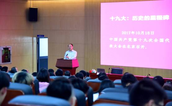在习近平新时代中国特色社会主义思想指引下,全国正在掀起学习十九大精神、学习传达习近平总书记在第十九届人大会议的重要讲话精神和“两会”精神的热潮。3月28日下午图书馆南馆报告厅,校党委书记刘洪一为《走进新时代 担负新使命》为题开启本学期“思政”第一课,我校师生代表近200人聆听了此次思想政治教育课程。刘洪一从“新时代”和“新使命”两个关键词说起,讲述了我国的新时代和新使命,以及深圳大学在新时代肩负着的新使命。