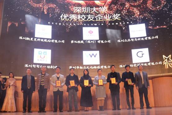 刘洪一、游如飞为深圳马克图布网络科技有限公司颁发了深圳大学十大新锐校友“最具成长性校友企业奖”;为深圳红动视界文化传播有限公司颁发了深圳大学“最具品牌价值校友企业奖”;为深圳来电科技有限公司颁发了深圳大学“最具社会影响力校友企业奖”。