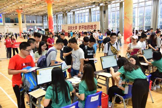 据了解,我校2018年共录取本科新生7543人,来自全国1501所中学,其中,广东省6154人,省外1052人。9月8日,6736名本科新生分别在深圳大学后海和西丽校区报到。其中,材料学院、化学与环境工程学院、生命与海洋科学学院和医学院的879名新生在西丽校区报到,其他学院的新生共5857人在后海校区报到。另外,坪山教学点的807名新生已于9月6日在深圳技术大学(筹)报到。据了解,深大今年录取的新生中,年纪最小的只有15岁,录取人数最多中学是汕头市潮阳实验学校,录取175人。