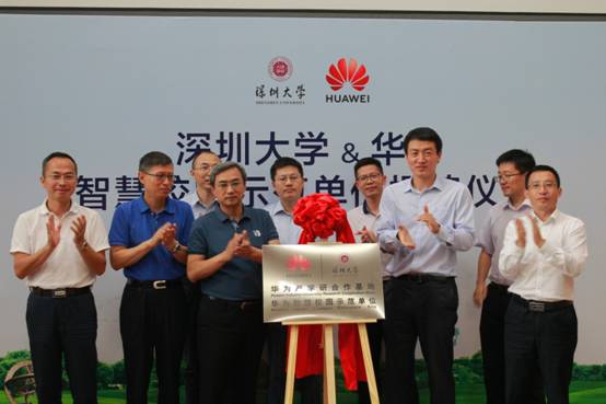 随后,王晖、董武以及双方出席人员一起为“深圳大学与华为智慧校园示范单位”揭牌。