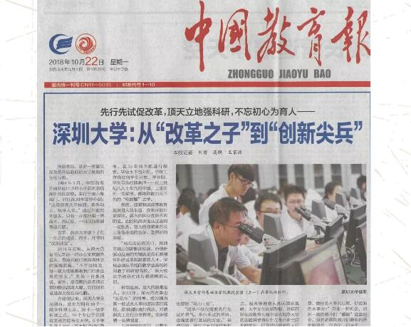 《中国教育报》头版头条报道:先行先试促改革,顶天立地强科研,不忘初心为育人——深圳大学:从“改革之子”到“创新尖兵”