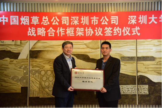 中国烟草总公司深圳市公司与深圳大学战略合作框架协议签约仪式12月27日上午在深圳大学举行。中国烟草总公司深圳市公司张亚宾局长、吴镇丰副局长,我校校长李清泉、副校长徐晨及党政办、研究生院、学生部、教育发展基金会等部门负责人参加签约仪式。