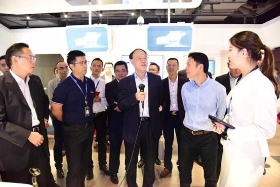 刘洪一一行首先参观调研了腾讯滨海大厦全业务展厅等功能区,详细了解了腾讯的发展历史、近年来的优秀案例成果及所积累的新兴技术情况。深大校友、腾讯高级副总裁奚丹全程陪同讲解。
