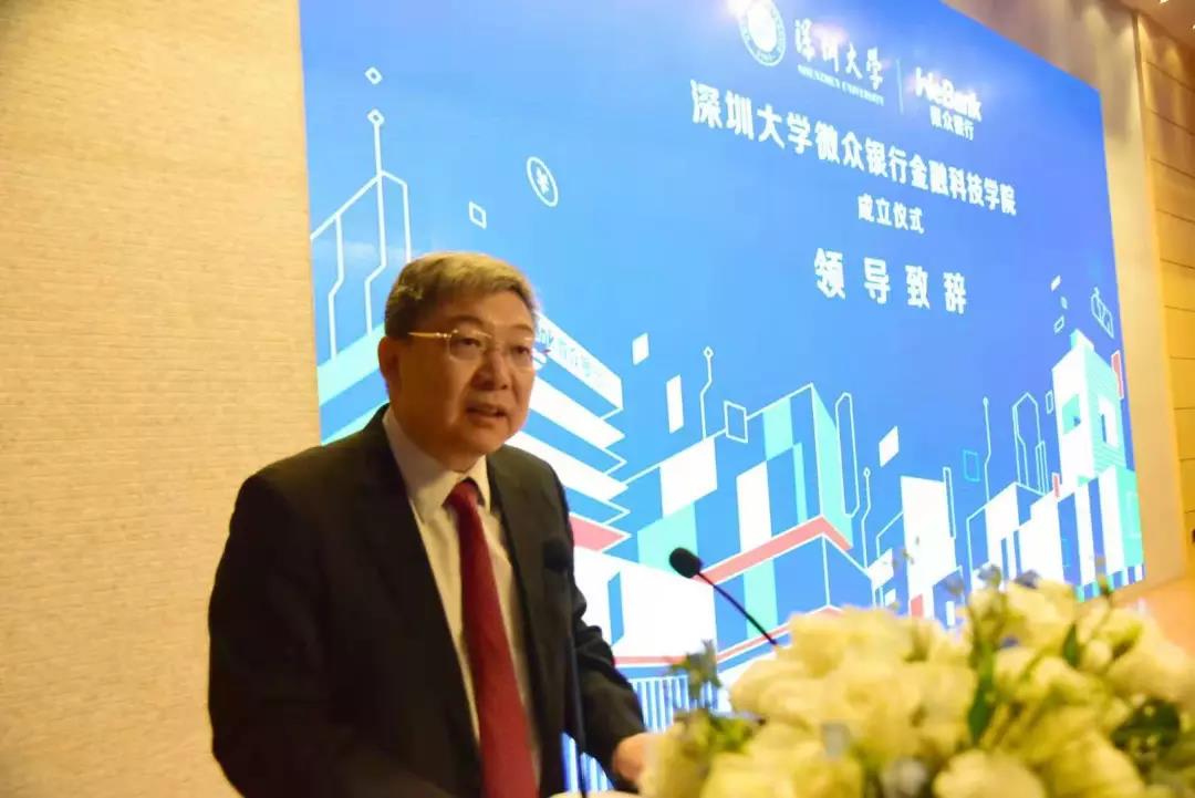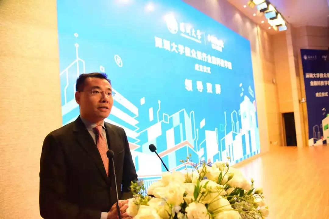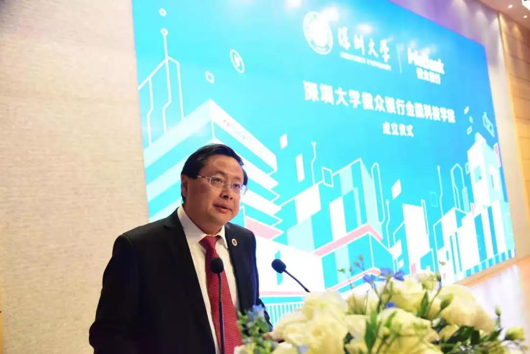 10月30日上午,捐赠仪式于深圳大学汇星楼一号报告厅举行。深圳市副市长艾学峰,原深圳市副市长、哈工大(深圳)经管学院教授唐杰,深圳市地方金融监督管理局副巡视员林居正,深圳市教育局二级巡视员关苏,深圳大学校长李清泉、副校长徐晨,微众银行董事长顾敏、行长李南青等领导以及我校众多师生参加了仪式。仪式由徐晨主持。