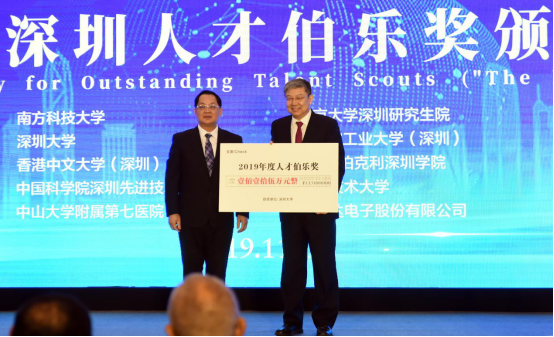 11月1日,在党的十九届四中全会胜利闭幕之际,深圳市在五洲宾馆举行了2019年“深圳人才日”聘任颁奖仪式,市委书记王伟中、市长陈如桂、市人大常委会主任骆文智等市领导以及深圳市高层次人才代表出席活动。颁奖仪式上,深圳大学被授予人才伯乐奖,获得奖金115万元,我校校长李清泉代表学校上台领奖。