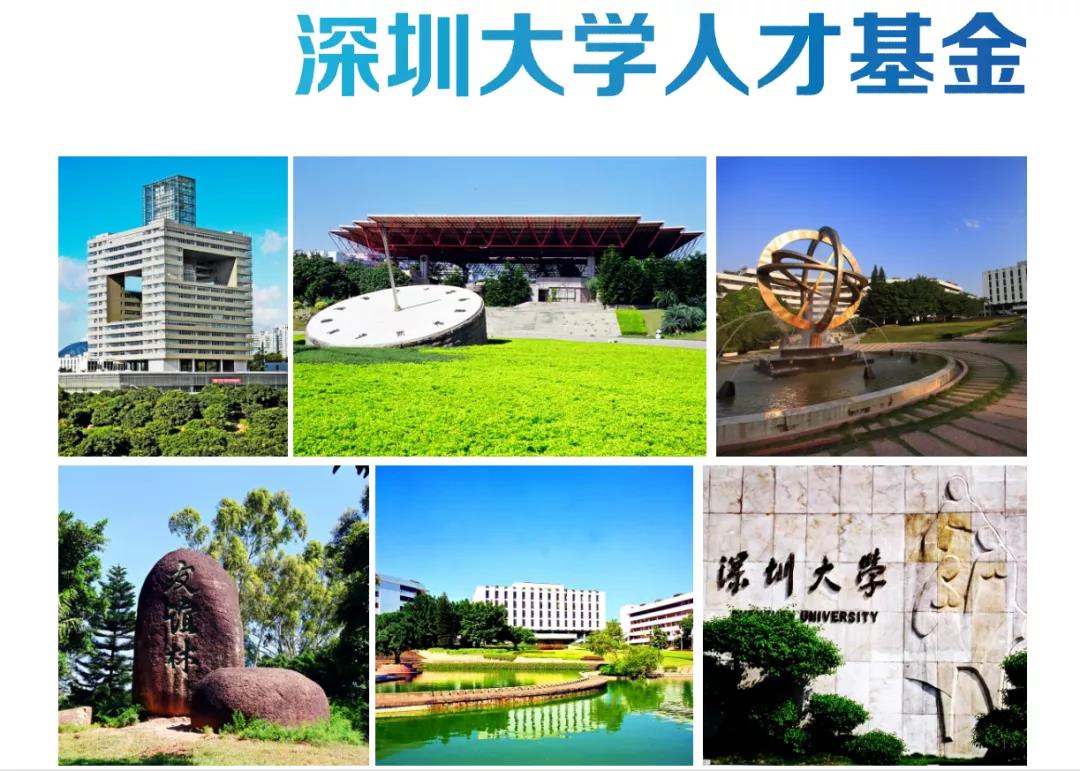 “深圳大学人才基金”由深圳大学和深圳大学教育发展基金会共同管理,包括深圳大学冠名教授基金、深圳大学大学生海外留学基金两项,致力于在重点学科和领域延揽一批具有国际领先水平的学术带头人,培养和支持国际领先学科,同时资助青年学者或优秀毕业生留学深造,构建青年人才培养的长效机制,目标规模人民币十亿元。冠名教授聘任人选从我校拟引进和现有全职在岗教师中选拔,分讲座教授和特聘教授两类,合同期内每人每年最高资助人民币30万元。海外留学资助标准为留学期内每人人民币10万元,根据学术研究进展分期资助。