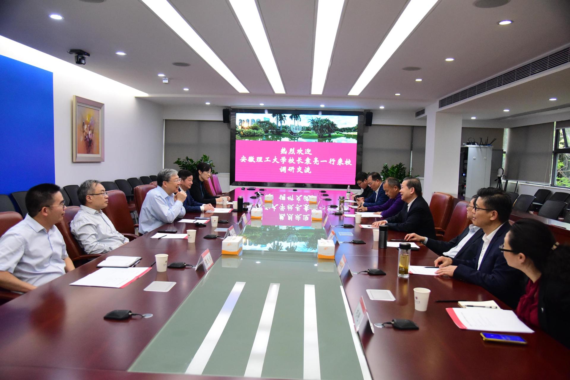 袁亮对深圳大学创新的办学理念、高速的发展和取得的成就表示高度赞赏。在介绍了安徽理工大学的办学历史、师资队伍和学科建设后,他表示,深圳大学作为“内地进步最快大学”,是地方高校建设的标杆。安徽理工大学希望学习深大的办学思想,在人才引进、学科创新发展、人事制度改革等方面借鉴深圳大学的经验,不断提高办学质量。