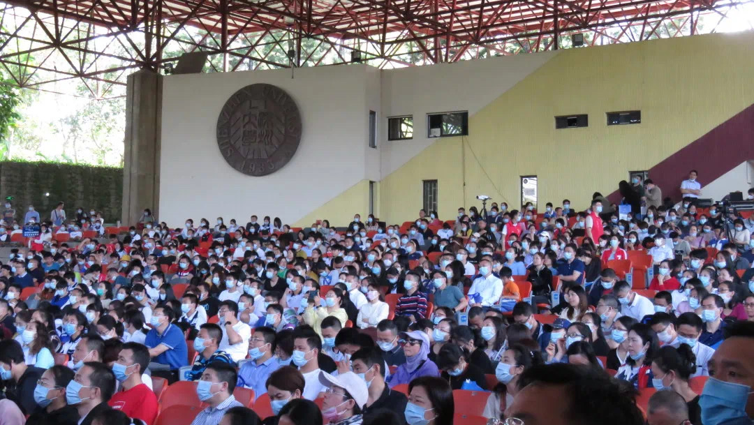 演会中心现场,学生和家长们认真倾听。虽然开放日只有短短半天,但仍旧干货满满,齐聚荔园的大家收获颇丰。
