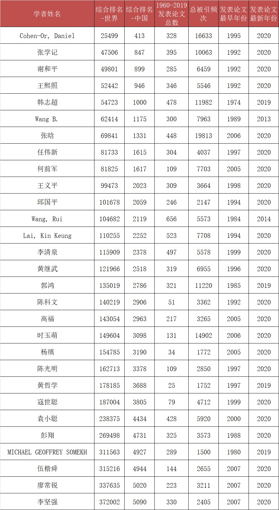 美国斯坦福大学发布了全球前2%顶尖科学家榜单(World’s Top 2% Scientists 2020),从近700万名科学家中遴选出世界排名前2%的科学家,排名分22个领域和176个子学科领域,囊括共约16万名来自各领域的著名科学家。该榜单分为“终身科学影响力排行榜”(1960-2019)和 “2019年度科学影响力排行榜”两个榜单。