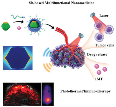 近日,深圳大学生物光子学研究中心屈军乐、宋军教授团队在国际顶级期刊Advanced Material(JCR一区TOP期刊,影响因子:27.398)上发表了一篇题为“Antimony Nanopolyhedrons with Tunable Localized Surface Plasmon Resonances for Highly Effective Photoacoustic-Imaging-Guided Synergistic Photothermal/Immunotherapy”的研究论文。陈钰博士为该论文第一作者,宋军教授为该论文通讯作者。