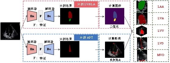 先天性心脏病(Congenital heart disease,CHD,简称先心病),是一种复杂的疾病,诊断过程也是繁琐的,一些功能型先心病在诊断过程中需要测量心脏的生物学参数,目前测量心脏的生物学参数需要医生手动勾画出解剖区域或者点出关键点,该过程耗时、低效筛查先天性,重复性高,结果依赖医生本身的专业水平。小儿超声心动图是筛查先心病常用的方法,小儿超声心动图的分割与生物学参数的测量对先天性心脏病的诊断和后续的治疗计划都有重要意义。小儿超声心动图的自动分割与测量,能够简化先心病诊断过程,提高诊断效率,为此提出一种小儿超声心动图自动分割测量方法。