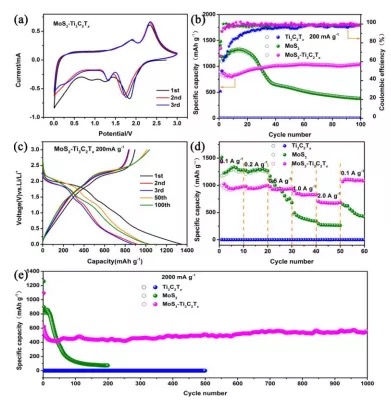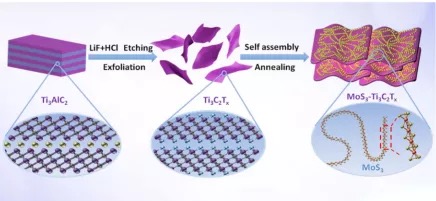 MoS3-Ti3C2Tx作为锂离子电池的阳极表现出优异的性能。当作为稳定和高效的锂硫电池阴极的硫主体时,MoS3-Ti3C2Tx-S异质结构显示出改进的催化活性和LiPS吸附能力。本研究不仅提出了一种高性能的锂离子电池正极材料,也为设计和研究一种具有化学催化和表面吸附功能的负极材料来调控多硫化物提供了一条途径。