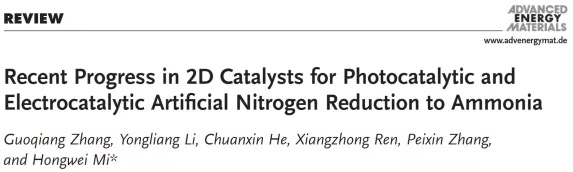 近期,深圳大学化学与环境工程学院米宏伟副教授团队在期刊Advanced Energy Materials(影响因子25.245,中科院JCR 1区,TOP期刊)上发表了题为"Recent Progress in 2D Catalysts for Photocatalytic and Electrocatalytic Artificial Nitrogen Reduction to Ammonia"的综述论文,并选为back cover。该团队张国强副研究员为第一作者,米宏伟副教授为通讯作者,深圳大学为唯一单位和唯一通信单位。
