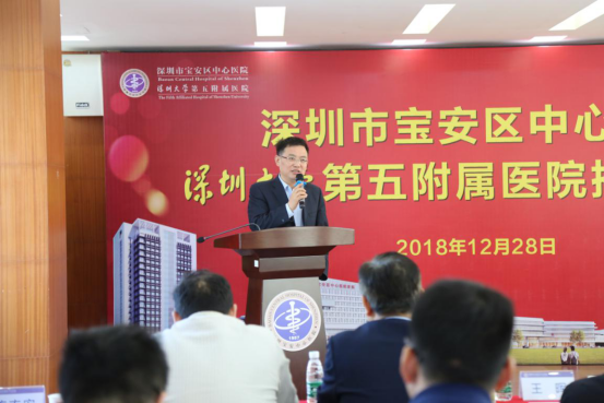 他表示,深圳大学第五附属医院在宝安区中心医院的揭牌,为我校临床、医疗事业的发展又添助力,希望未来在医、教、研等方面深度合作,携手共进、优势互补、共创辉煌,为医疗卫生事业发展谱写新篇章!
