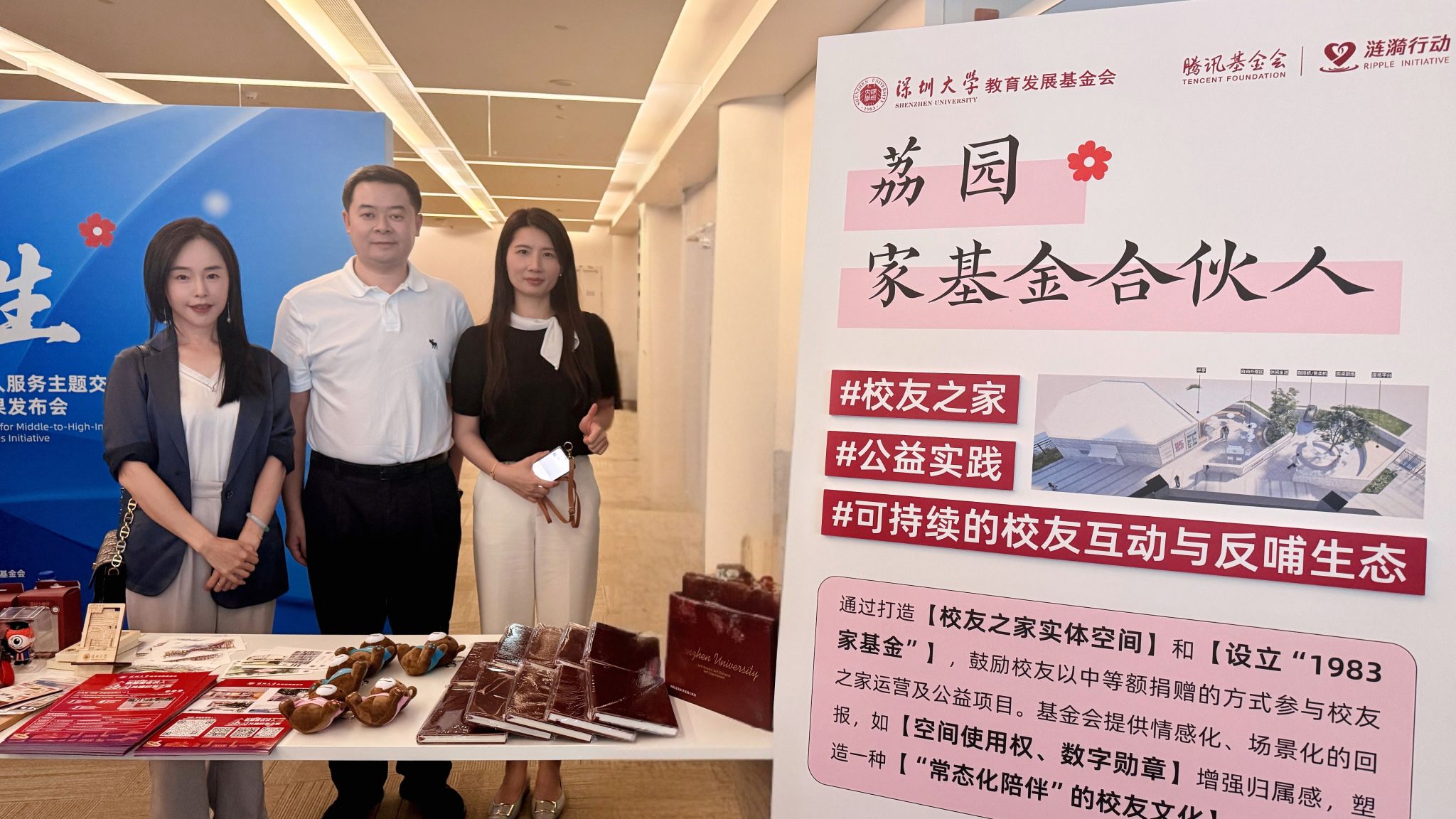 9月11日,深圳大学教育发展基金会应邀参加腾讯基金会“涟漪共生”中高收入人群捐赠人服务主题交流暨涟漪行动中期成果发布会,并在圆桌论坛环节分享深圳大学教育发展基金会“涟漪行动”荔园·家基金合伙人项目的创新实践与思考,现场设置的项目展位也吸引了诸多与会同行驻足交流。