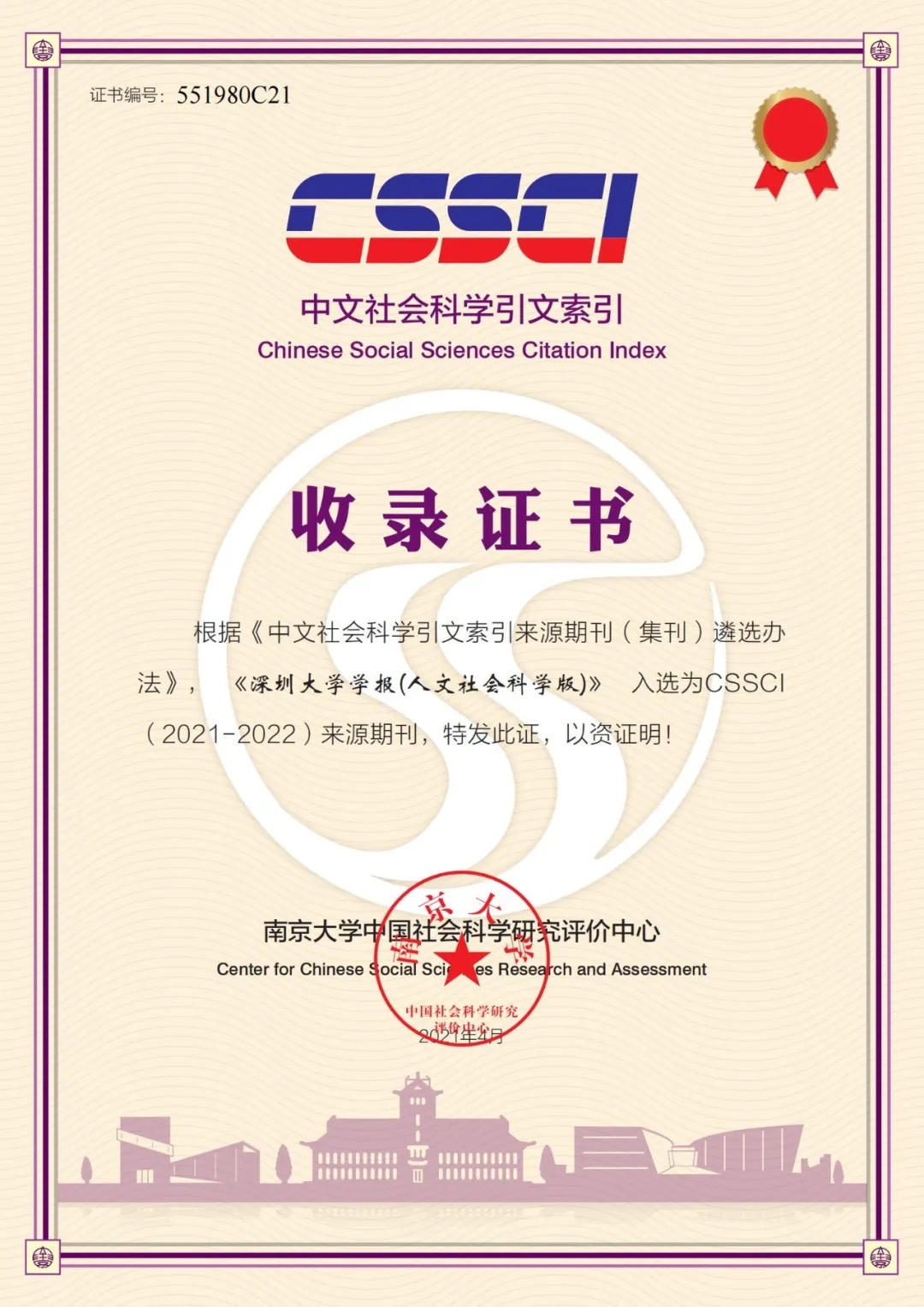 越办越好了!深大文科学报再登C位!:2021/05/12 越办越好了!深大文科学报再登C位!:2021/05/12好事成双!日前,《深圳大学学报(人文社科版)》再次入选CSSCI、北大核心来源期刊!2021年4月26日,南京大学中国社会科学研究评价中心...
